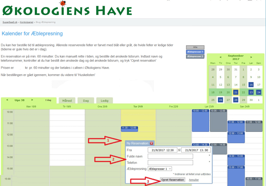 Vejledning til at bestille tid til æblepresning i vores kalender.