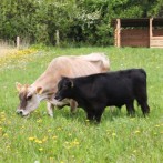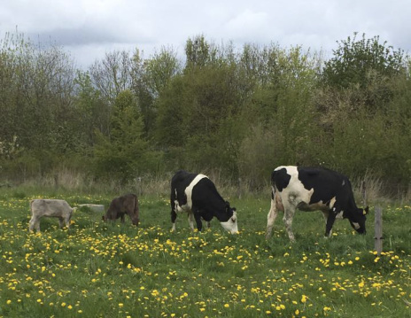 Det er to unge køer som ikke passede til malkerobotten hos Uffe Bies mælkeproduktion i Ejstrupholm. Men de kan sagtens give mælk til to fine Charoslais krydsningskalve. De fire økologiske ”damer” skal afgræsse arealerne sammen med fårene og grisene indtil slutningen af oktober. Køerne ejes af Økohaven, og det er meningen, at der skal blive et overskud, når køerne sælges om 5-6 måneder enten som levende dyr eller som slagtet kød.