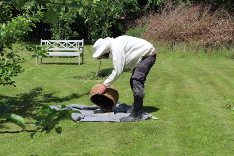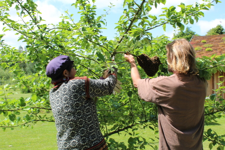Der var virkelig mange bier i den klump! Rasmus blev assisteret af Gina, og bierne får nu et nyt hjem et andet sted end i vores æbletræ. 13.06.17