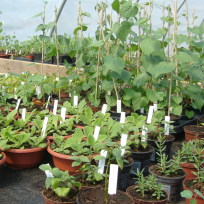 Udplantningsplanter af sommerblomster og spiselige afgrøder