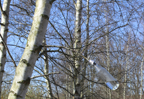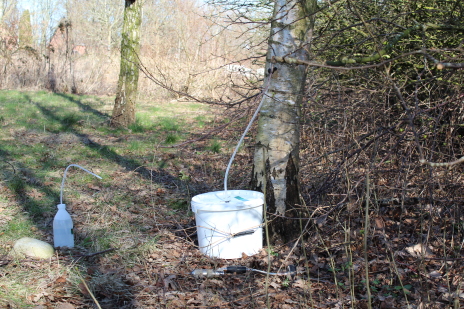 Et birketræ kan give mellem 5 og 15 liter saft i døgnet, Jo større en trækrone træet har, desto mere saft er der i træet. I skal kun tappe træet nogle dage.