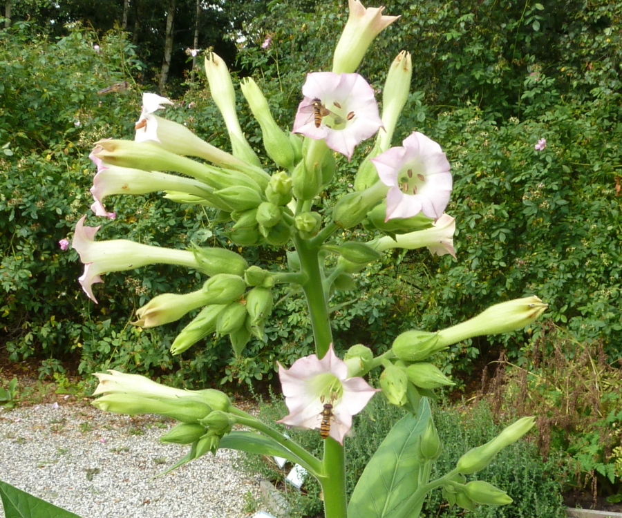 Enårig, 1-2 meter høj urt. Hele planten er dækket af klæbrige kirtelhår. Stænglen er tyk og ugrenet eller svagt grenet med spredte, aflange-elliptiske blade. Blomsterstanden er en top med hvide-blegrosa (sj. røde) tragtformede blomster. Blomstrer juli-oktober. Frugten er en ægformet mange-frøet kapsel. Dyrkes som prydplante. Findes sjældent forvildet.