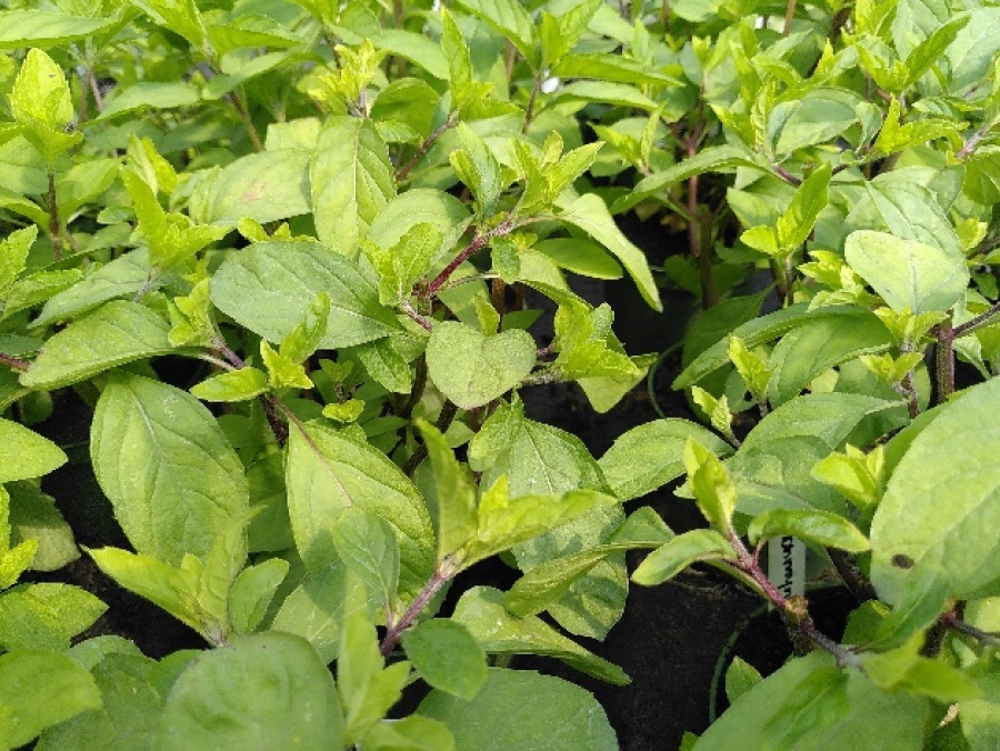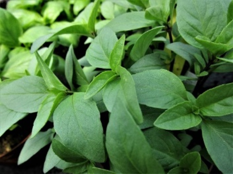 Dette er en kompakt plante med blanke grønne blade og rødlilla blomster. Bladene øverst bliver mørkere grønne med lilla skær. Den bliver 40-50 cm høj. Den har en stærk anis-smag og duft, og bruges ofte i det asiatiske køkken. Den er varmekrævende og trives i næringsrig og veldrænet muld. Den tåler hverken kulde, blæst eller udtørring og passer derfor godt til udplantning i drivhus. Planteafstand er 20-30 cm. Man kan knibe skuddene af lige over et bladpar, for at fremme bladsætningen. Denne plante dyrkes oftest på grund af dens smukke blomster og som smagsgiver i thairetter. Lader man den blomstre er den god for insekter.