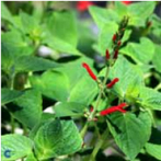 Salvie med små, ovale græsgrønne blade og røde blomster der har en dejlig duft af solbær. Det er en flerårig busk, ca. 80 cm høj og er nok den mest hårdføre af frugtsalvierne. Den kan klare en overvintring udendørs hvis den tildækkes. Overvintres dog bedst frostfrit, lyst og køligt. Bladene bruges til krydderi og er gode til te. Blomstrer i juni, juli og blomsterne bruges om pynt på desserter og kager. God som krukkeplante på et solrigt sted.