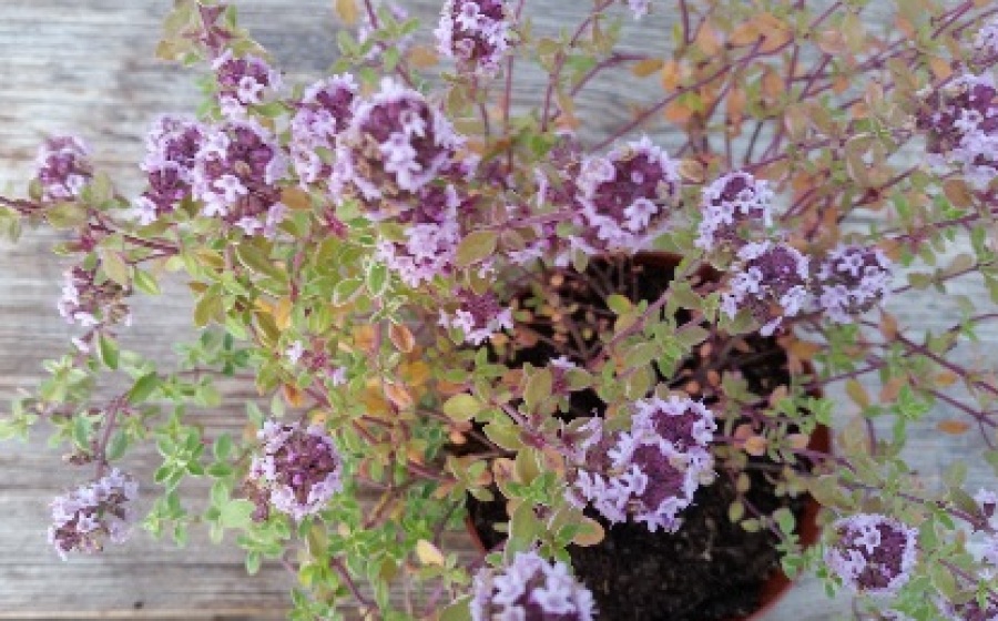 Italiensk oregano-timian er en 15-30 cm høj krydderurt. Den har en aroma som oregano med en snert af timian, og kan bruges som oregano på pizza, i grønsagsretter osv. Blomstrer fra midt maj med store lyslilla blomster. God bunddække- og insektplante. Kan stå i sol/halvskygge i en let og veldrænet jord. Oregano-timian er generelt meget vækstvillig og vinterhårdfør. Ligesom andre timian egner den sig godt til tørring.