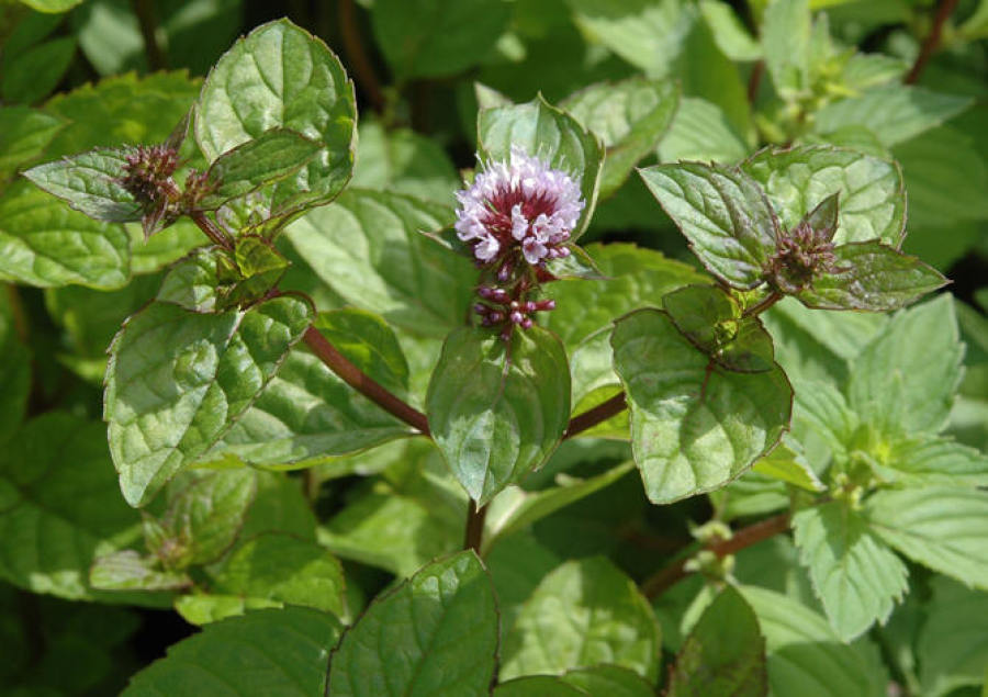 Peber mynte er en 40-60 cm høj plante med lyslilla blomster. Planten kan være grøn eller rød. Smagen er skarp og pebret. Planten er flerårig, vinterhårdfør og spreder sig villigt, så den kan evt. plantes i en krukke. Trives i sol/halvskygge i næringsrig, fugtig men veldrænet jord. Anvend blade og blomster til fx fjerkræ, salater, te og badevand.