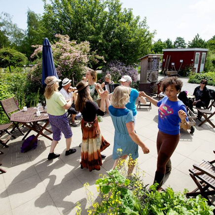 Billeder fra Kulturkaravanens besøg i Økologiens Have den 1. juni 2014.